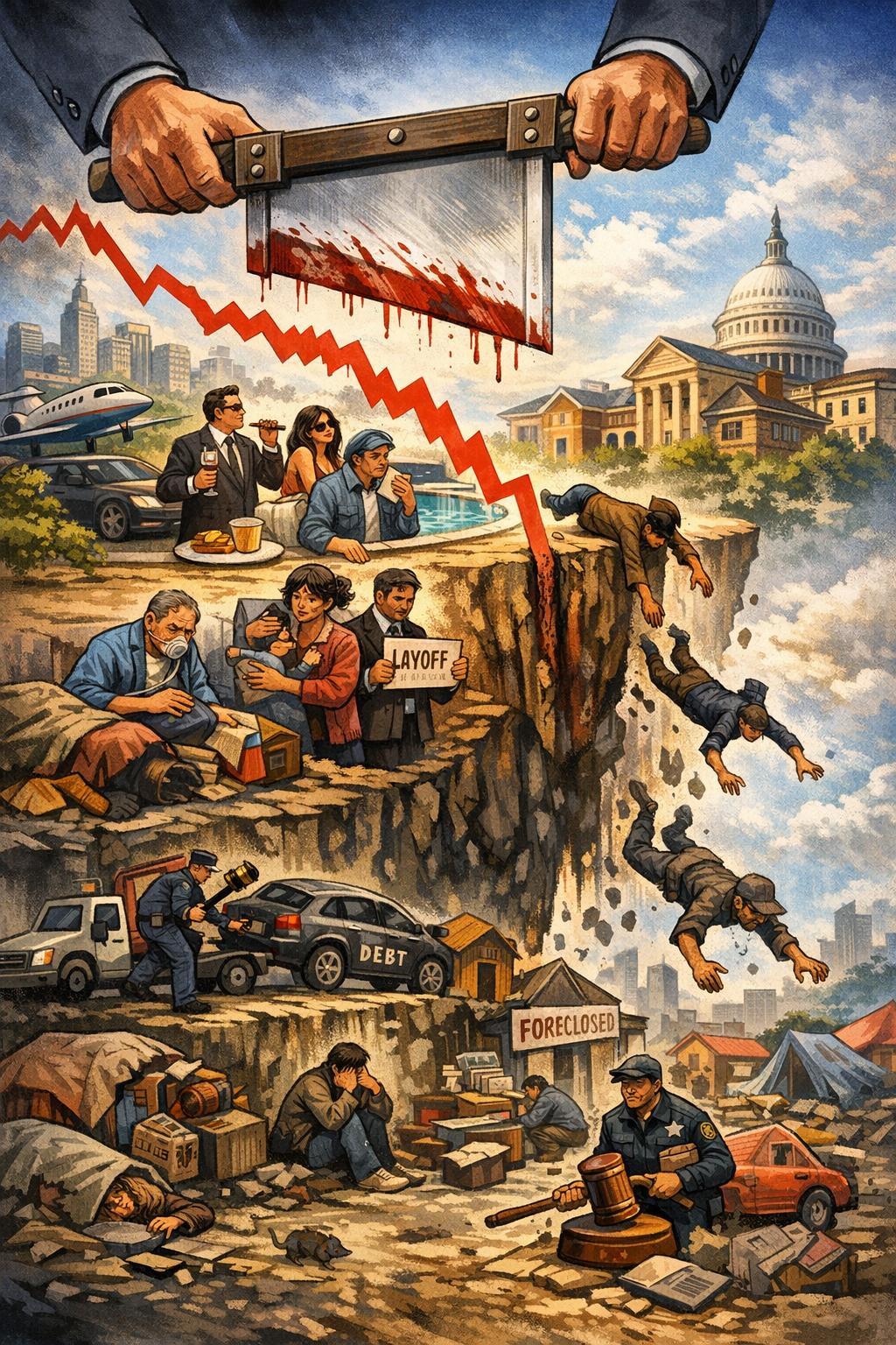 L’exemple du projet de loi fiscal et budgétaire « Big and Beautiful », entré en vigueur en juillet dernier, est révélateur : il réduit massivement les aides alimentaires et médicales destinées aux classes populaires tout en accordant d’importantes baisses d’impôts aux hauts revenus. The Atlantic l’a qualifié de « plus grand transfert de richesse vers le haut de l’histoire américaine ». Le Center for American Progress estime que cette loi, combinée aux mesures tarifaires, entraînera une baisse des revenus de 99 % des Américains d’ici 2027, tandis que le 1 % le plus riche en bénéficiera.